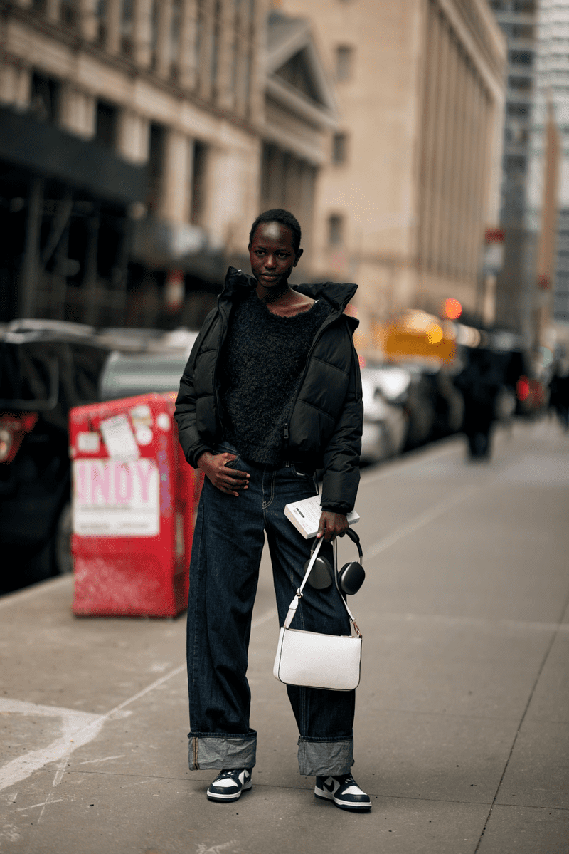 This is one of those areas where the runway and street fashion are in near-perfect alignment. Designers are responding to baggy jeans being worn at street level that either hang straight down from the hips or balloon out to nearly comic proportions.