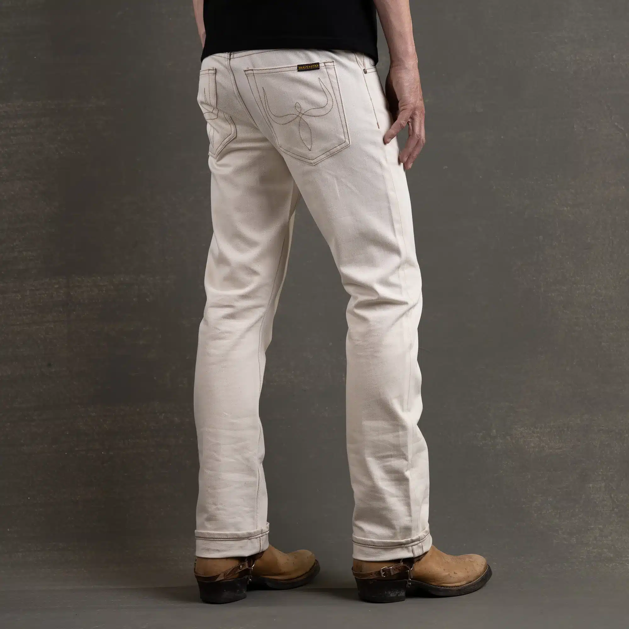 One of Brave Star’s newest fits, inspired by mid-20th-century cowboy silhouettes. With a subtle knee-to-hem gradation, it is built to sit cleanly over work or Western boots, reviving a classic American profile.