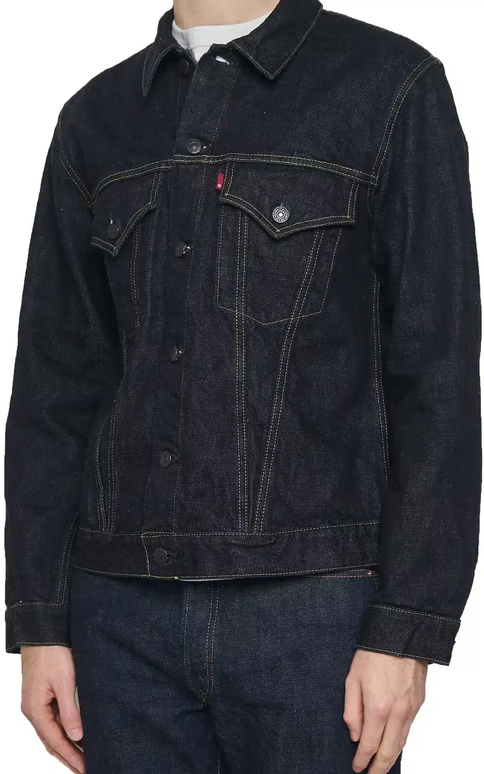 Much of the magic of the Type III comes from the triangular stitching that runs from the chest pockets to the waist. It gives the jacket a dramatic slimming effect, and Full Count has tweaked the design just slightly to amplify this. While Levi’s leaves a bit of space at the point of the triangles at the waist, Full Count’s version brings the rows of stitching together until they are only millimeters apart.