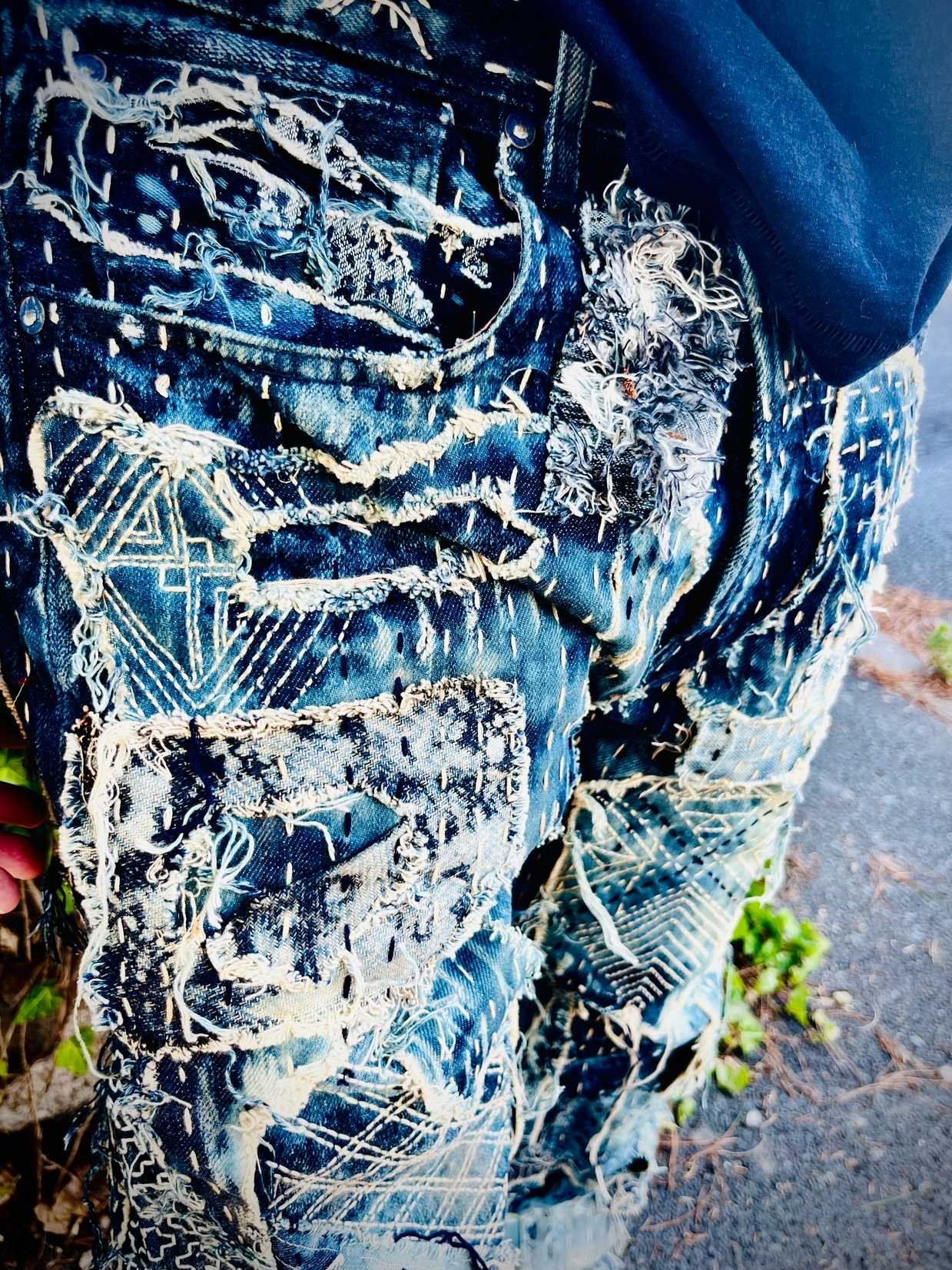 We find it intensely difficult to part with the pairs that we’ve fully faded—even after they’ve become almost entirely unwearable—but this initiative ensures that our fading efforts lead somewhere. In their expert hands, Handz pairs can become the backbone for works of denim art.