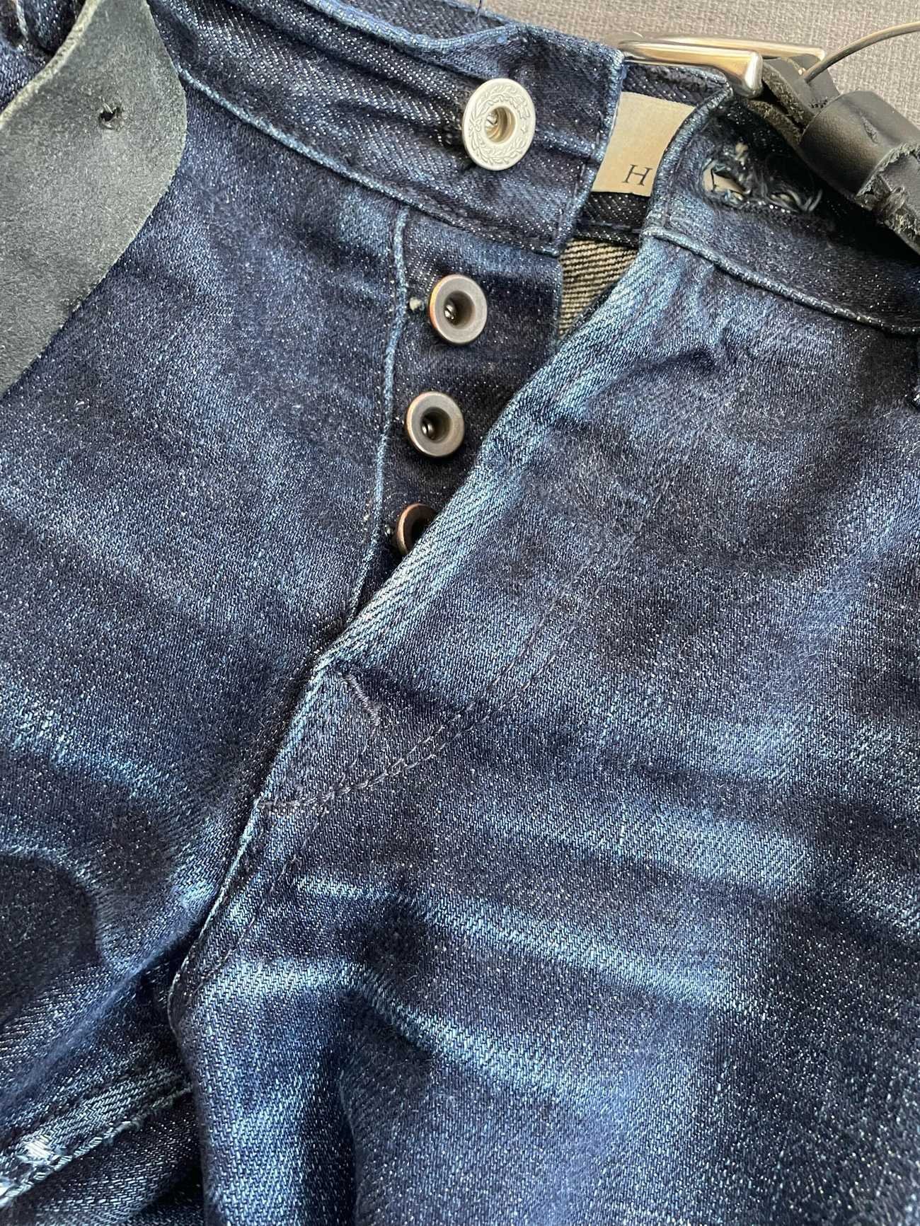 Inda (aka @inda.kalivoda) has had a similar experience with the same pair. She managed to coax bright indigo tones and slubby texture to the surface in just a few months, and she loves the indigo topstitching, which makes the pair easy to wear at the office. She’s considering the Handz Wildered (a wide-legged ladies fit) for the next Invitational.