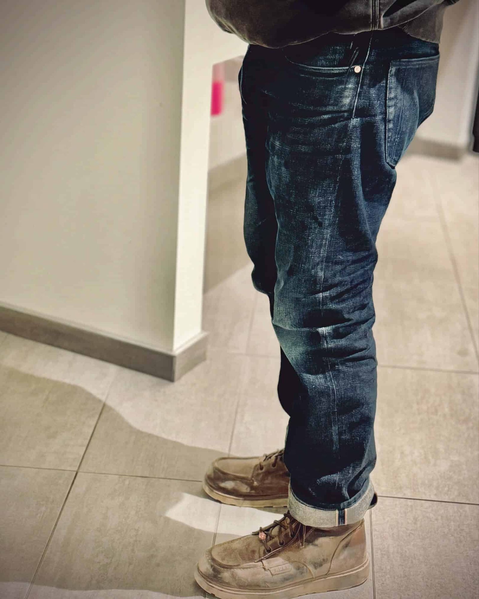 His 14 oz. unsanforized pair of Stapled took time to open up for him, but they started accelerating after around six months of wear. He loves how they have retained their shape, even after months on end of near-daily wear.