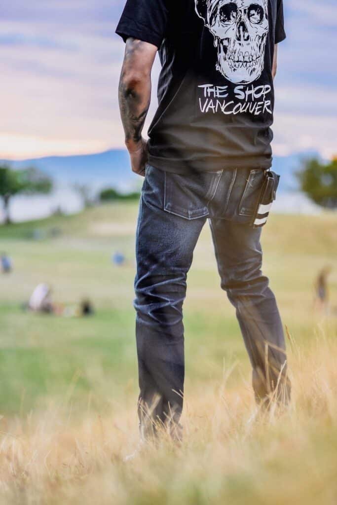To do justice to our beautiful denim and the fades we’ve worked hard to produce, we need to do more than simply throw our jeans on the ground or on the bed and snap a few photos. We need to stage our photographs for interest, depth, and contrast.