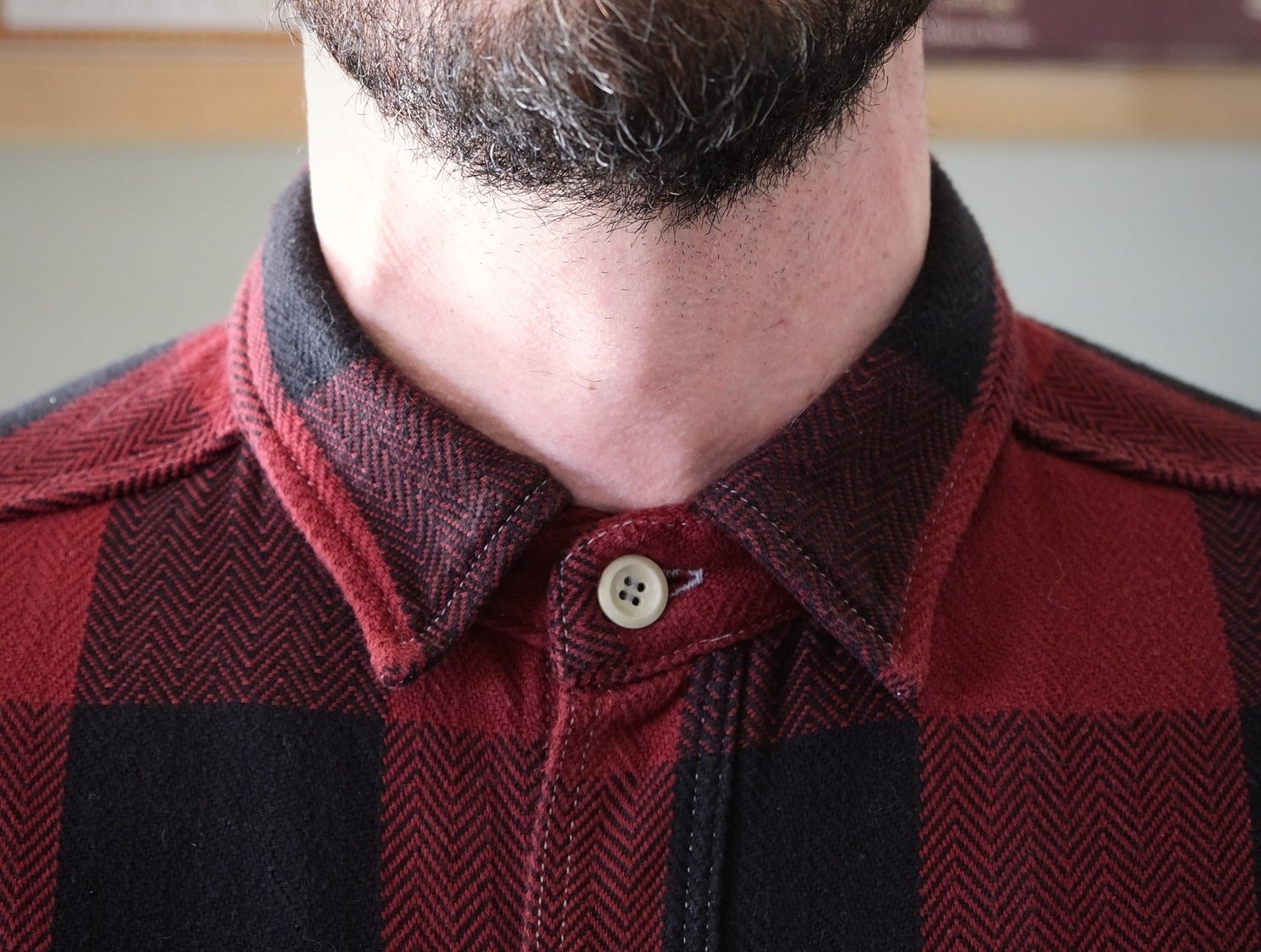 It’s good practice to play around with the fasteners to see how small changes can make a big difference. Start at the throat. With only the top button left open, the flannel is still quite conservative. Thomas and I both like to leave at least the top two snaps undone.