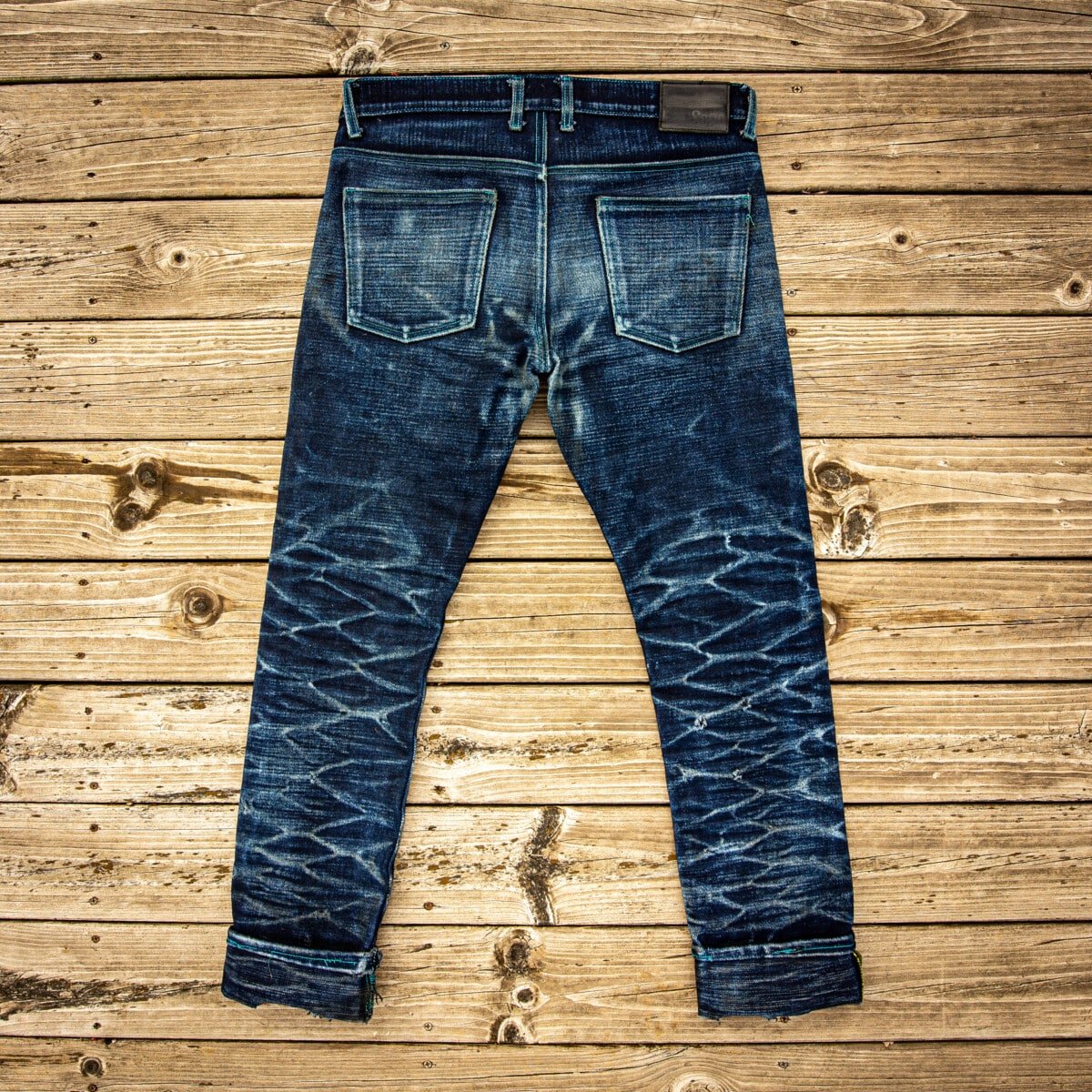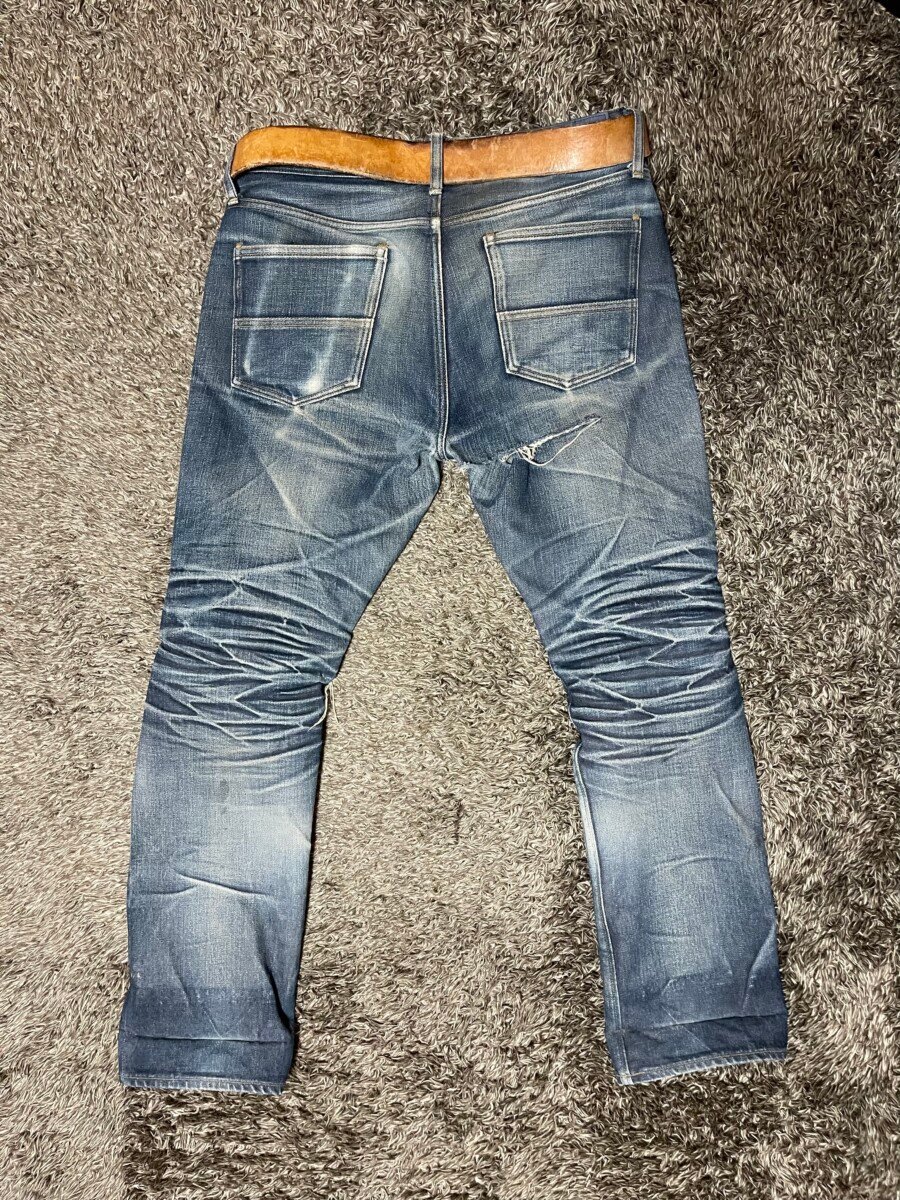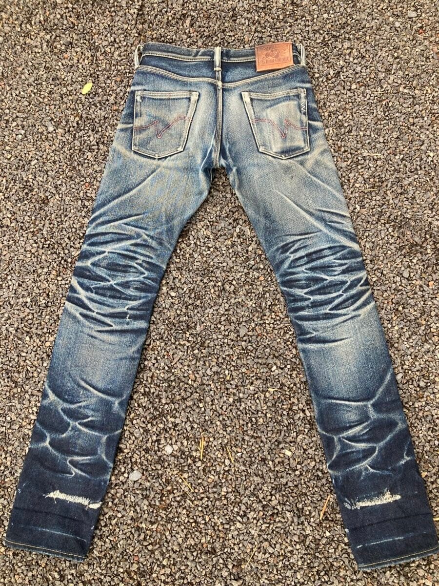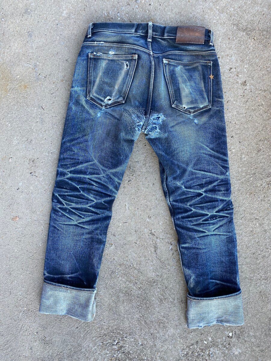 The combination of the snug fit around the calves and the stacked up heavy selvedge couldn’t have been comfortable, but it produced results unlike anything we’ve seen before.