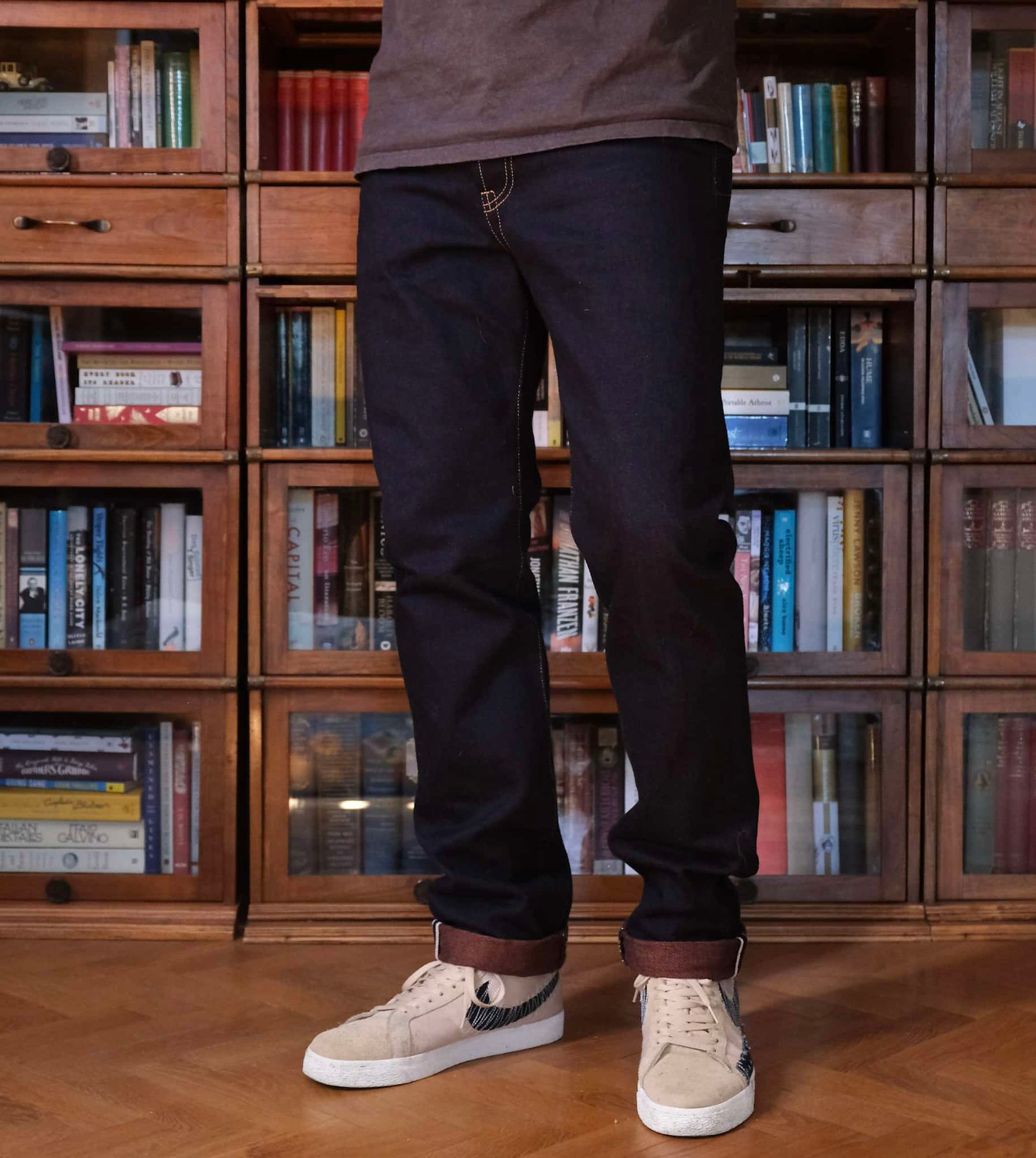 I tried to create an approximation of how mid-century shrink-to-fit pairs fit after their first wash. The result is a slimmed-down high-rise fit (No. 5SH) that somehow feels both classic and modern.