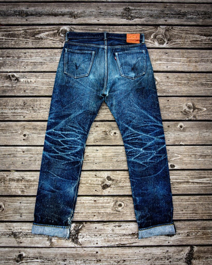 The tranquil sea of sky blue that dominates the back of these jeans shows why serious vintage faders need at least one pair of Samurai straights in their collection.