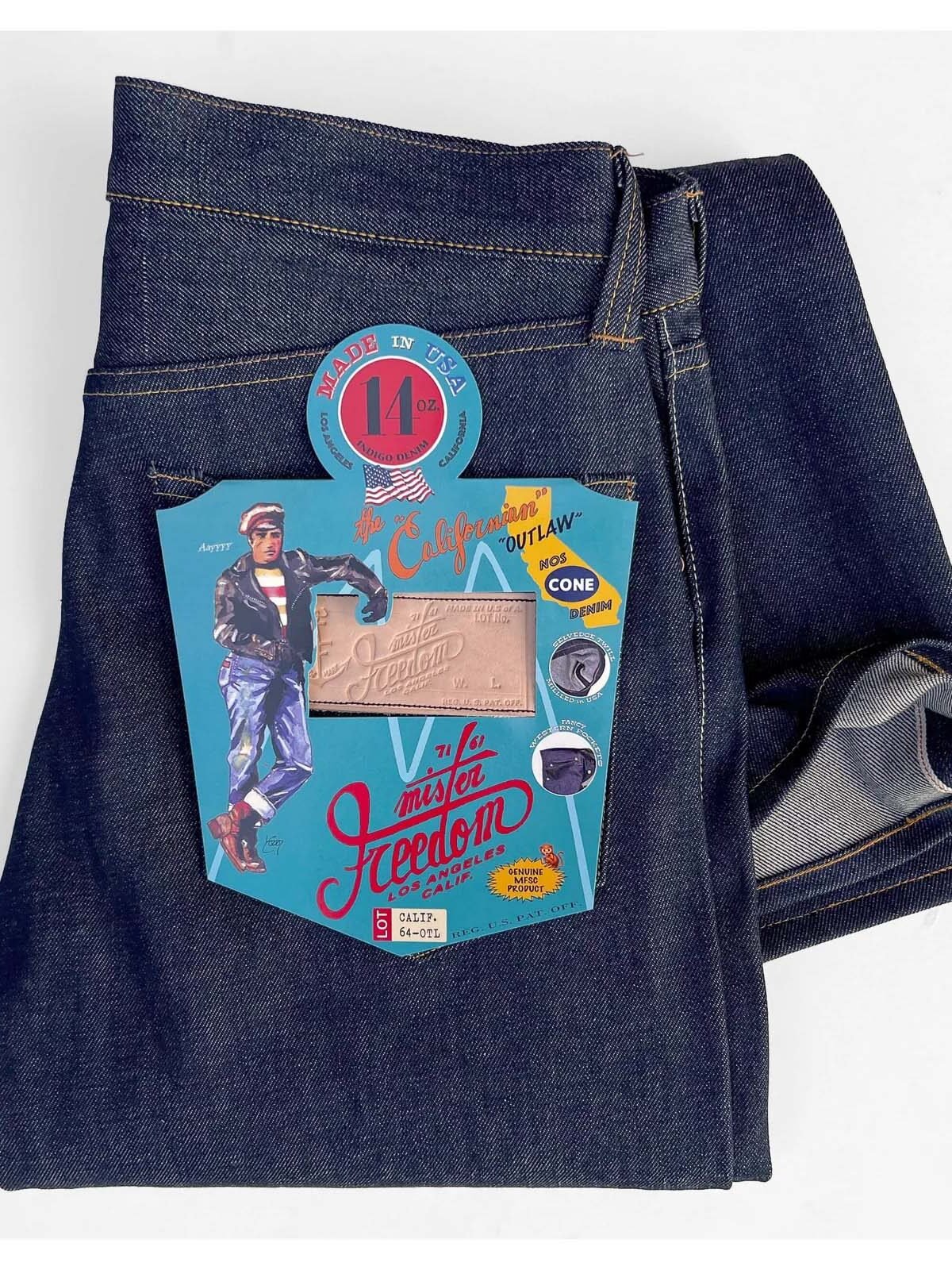 Mister Freedom have stockpiled a few rolls of NOS (New Old Stock) Cone Mills denim. They release it in a trickle, using it to make pairs with a deep ‘60s vibe.