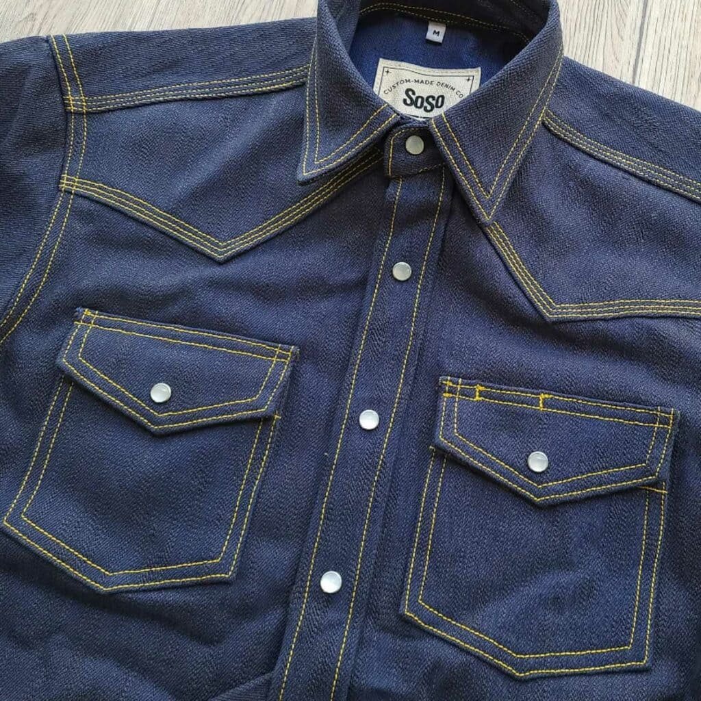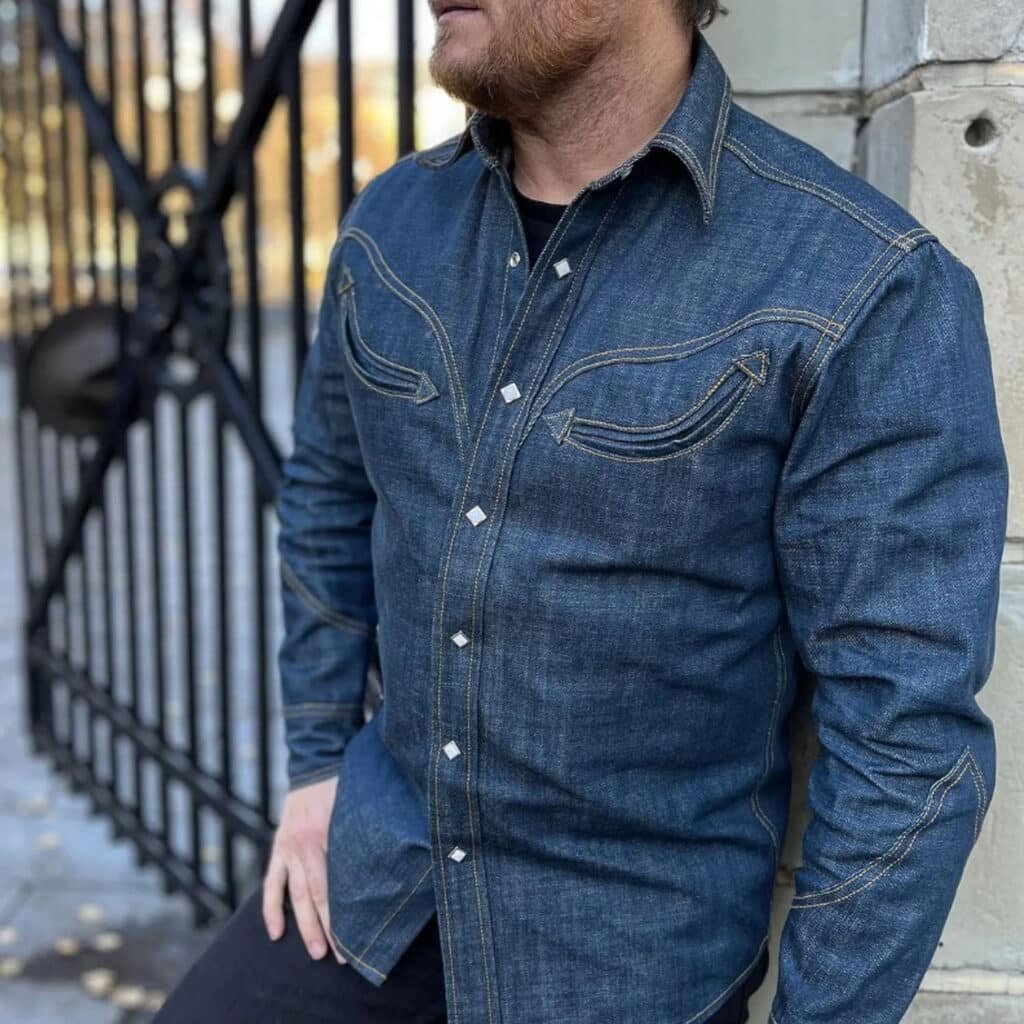 At this weight, we’re recommending this fabric for a jacket, but, as you can see below, it does look exceptionally good as a western. It’s a bold choice no matter how you cut it.