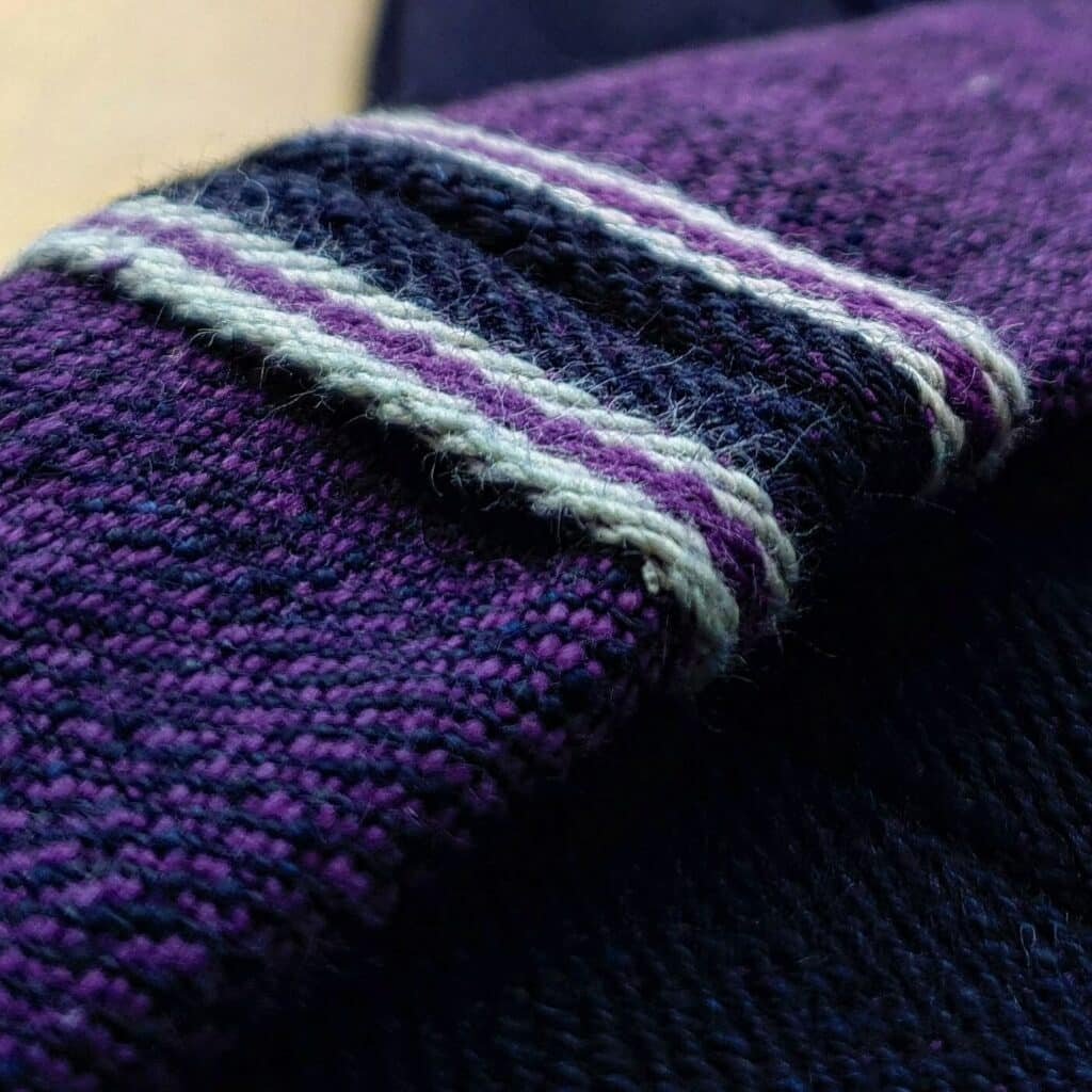 The warp yarns are Dirty Harry brown, but overdyed blue; the weft yarns are a more conventional white yarn that’s been dyed a deep shade of blue. The result is a warp that will fade to brown and a weft that will fade to white. Colour us intrigued.