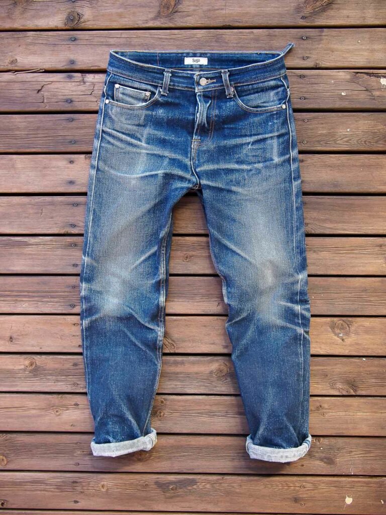 Having broken in a pair of SOSO’s 33 oz. jeans, I can say that this denim is surprisingly comfortable. It never lets you forget that you’re wearing double-weight denim, but after a few dozen wears, it begins to move with you rather than fight you at every turn. It’s really a remarkable fabric–far more wearable than I expected. That said, this one is definitely not for casual faders.