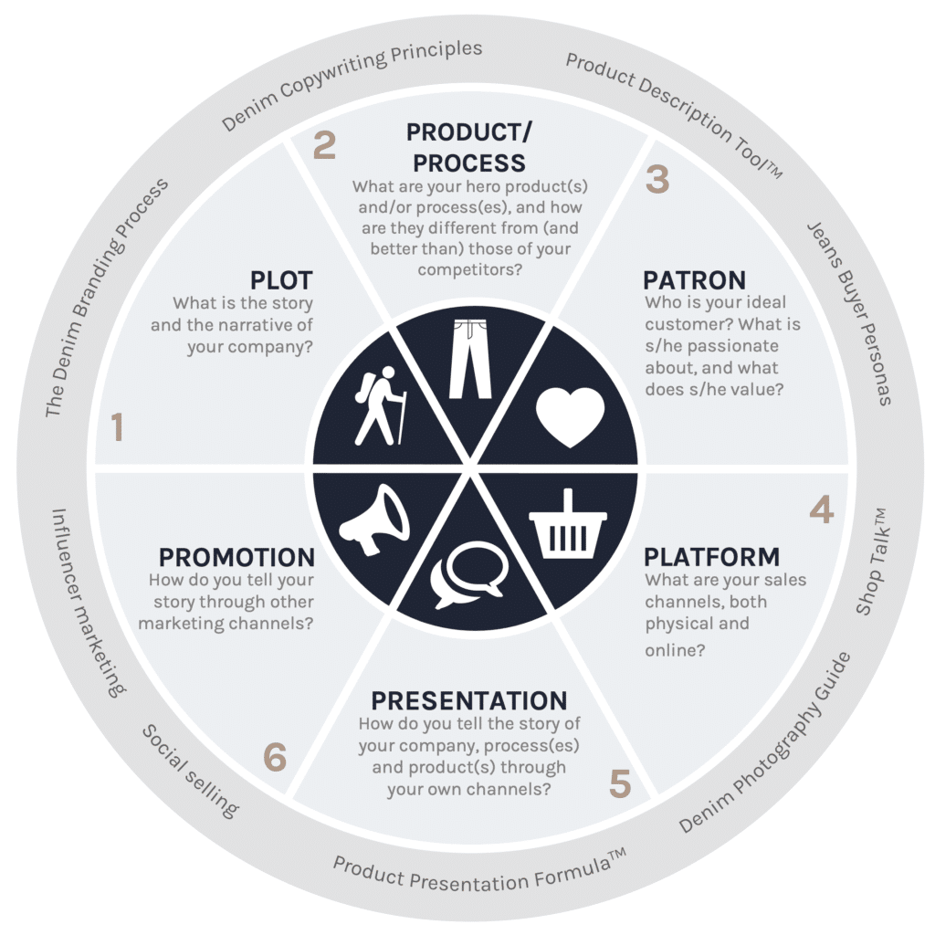 Over the years, I’ve developed my own method that gets you the results you need. I call it the STORY/SELLING BLUEPRINT. It’s a framework I apply to both my B2B and B2C clients across the entire value chain of the denim industry.