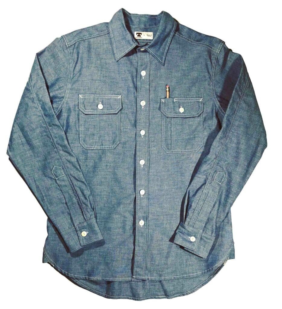 Both pockets are also divided, giving you a pencil slot on the left-hand side and a handy knife pocket on the other side. In some versions, Tellason uses tonal stitching, but in the indigo chambray, the stitching contrasts nicely. We prefer it with the contrasting stitching as it highlights the shirt’s working heritage and makes it immediately recognizable.