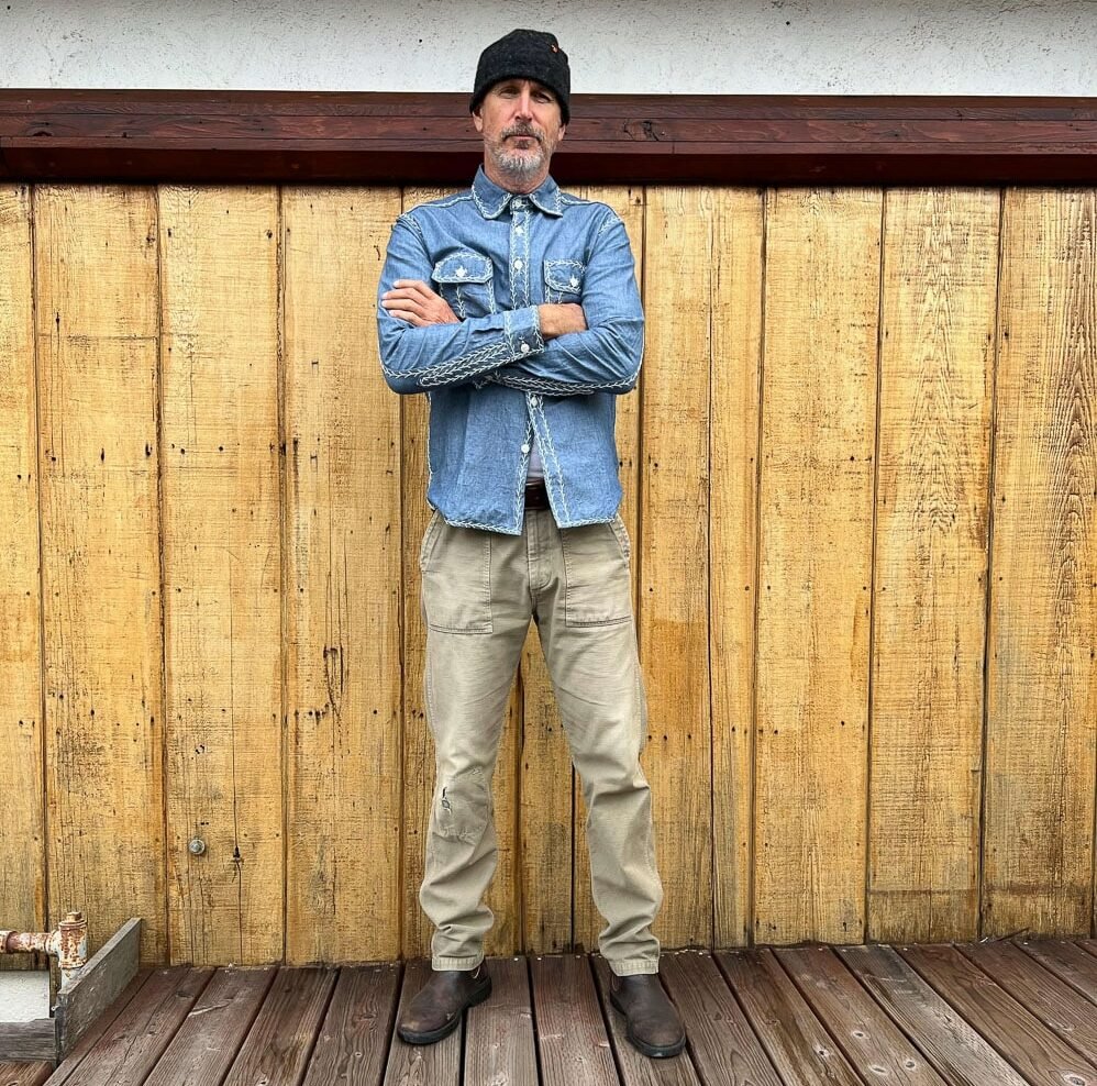 You’ll find it easy to spend a lot of time in it. The chambray shirt is one of the most versatile pieces in the rebel’s wardrobe. Its plain weave breathes very nicely, so it remains wearable even when the temperatures climb. In the fall and winter months, it can be worn as a layering piece under heavier denim shirts or jackets, providing a softer layer close to the skin and a great contrasting tone when layered under dark indigo pieces.