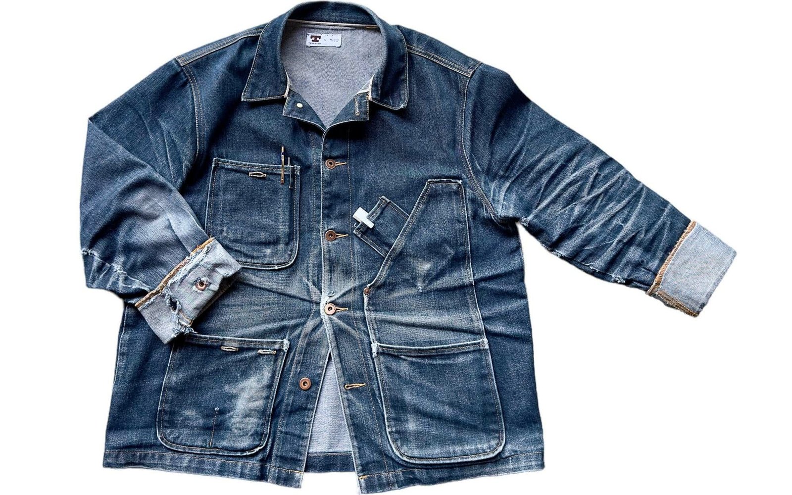 Tellason has made the jacket even more useful than its French and American predecessors. With a total of six pockets (five on the front of the jacket, and one concealed on the inside), the Coverall is as handy as a tool belt.