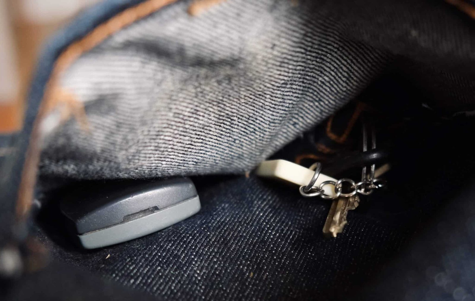 The divided hip pocket (originally designed to keep mobile phones from sliding around), helps keep things I need to access quickly in their place. My keys live on one side of the divide and my clicker (for the gate at the end of the drive) on the other.