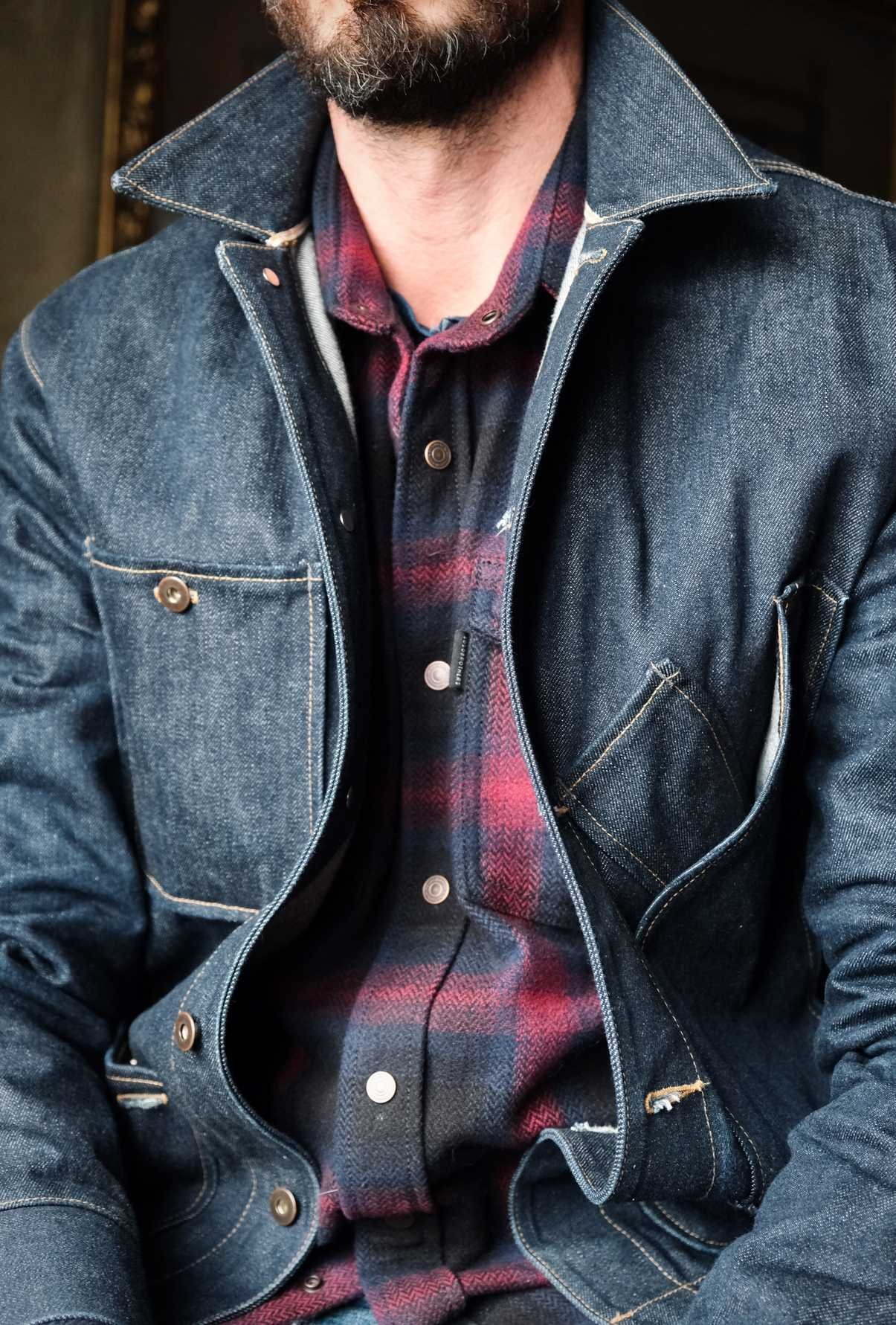 They shot a few ideas back and forth, and the first version of the jacket debuted in the Brooklyn shop a few months later. Inspired by dustbowl-era denim chore coats, it drew from a deeper and older well of American workwear than other selvedge jackets being produced at the time.
