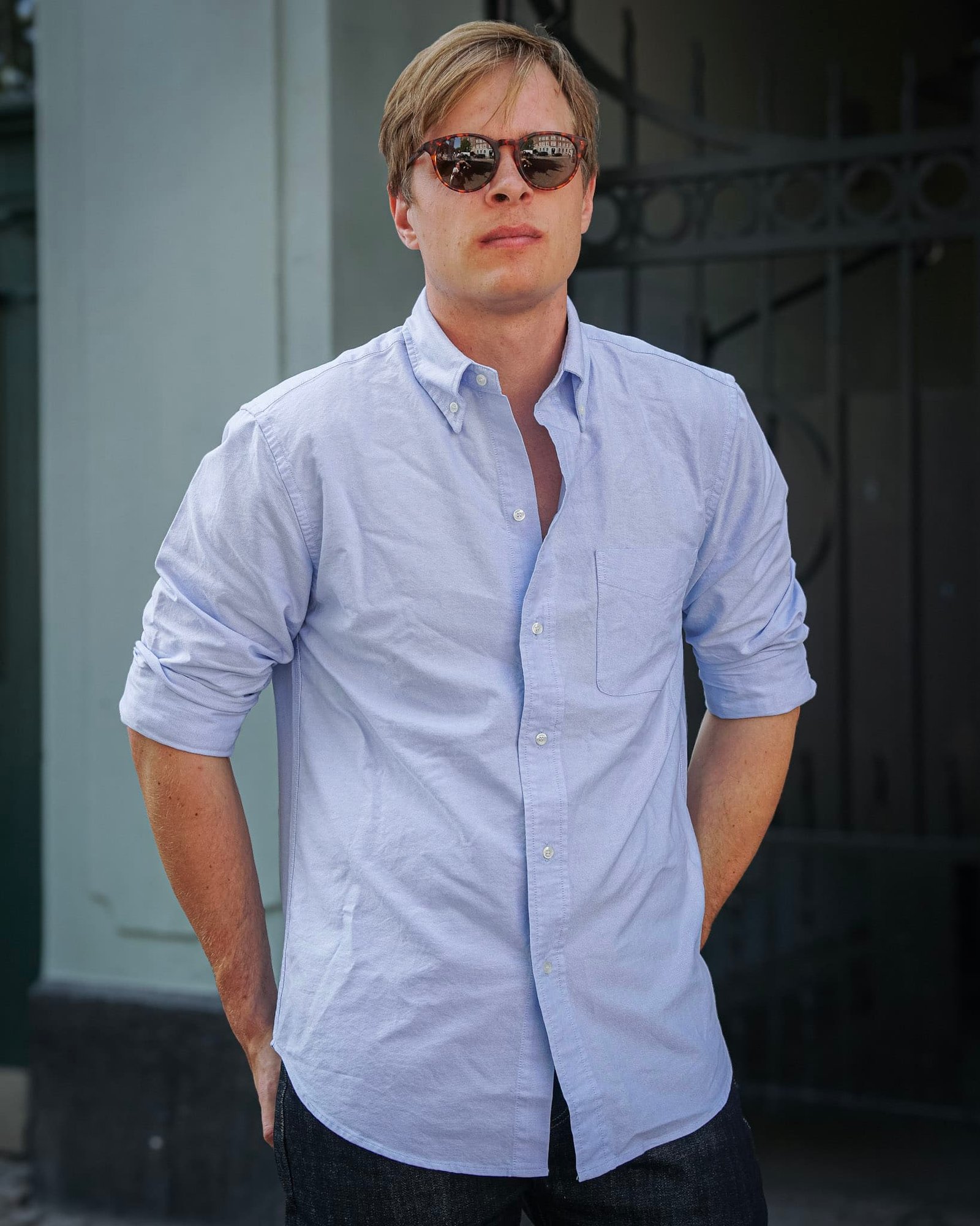 Pete grew up around button-downs—his dad wore them, and family warehouse trips brought home stacks. Tony takes a simpler view: denim and oxfords just belong together.